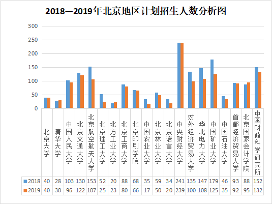 圖1-1.2018-2019年北京地區計劃招生人數分析圖