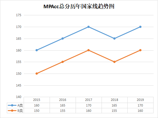 如圖4-1所示:會計碩士歷年國家線是處于上升趨勢。