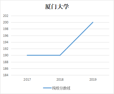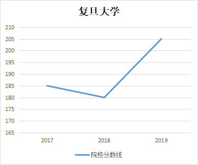 如圖4-4至4-8所示:2017-2019年熱門院校分數線處于上升趨勢,其中雖然復旦大學,廈門大學的院校分數線在2018年處于下降或持平,但2019年普遍提高分數線都在4分到25分之間。