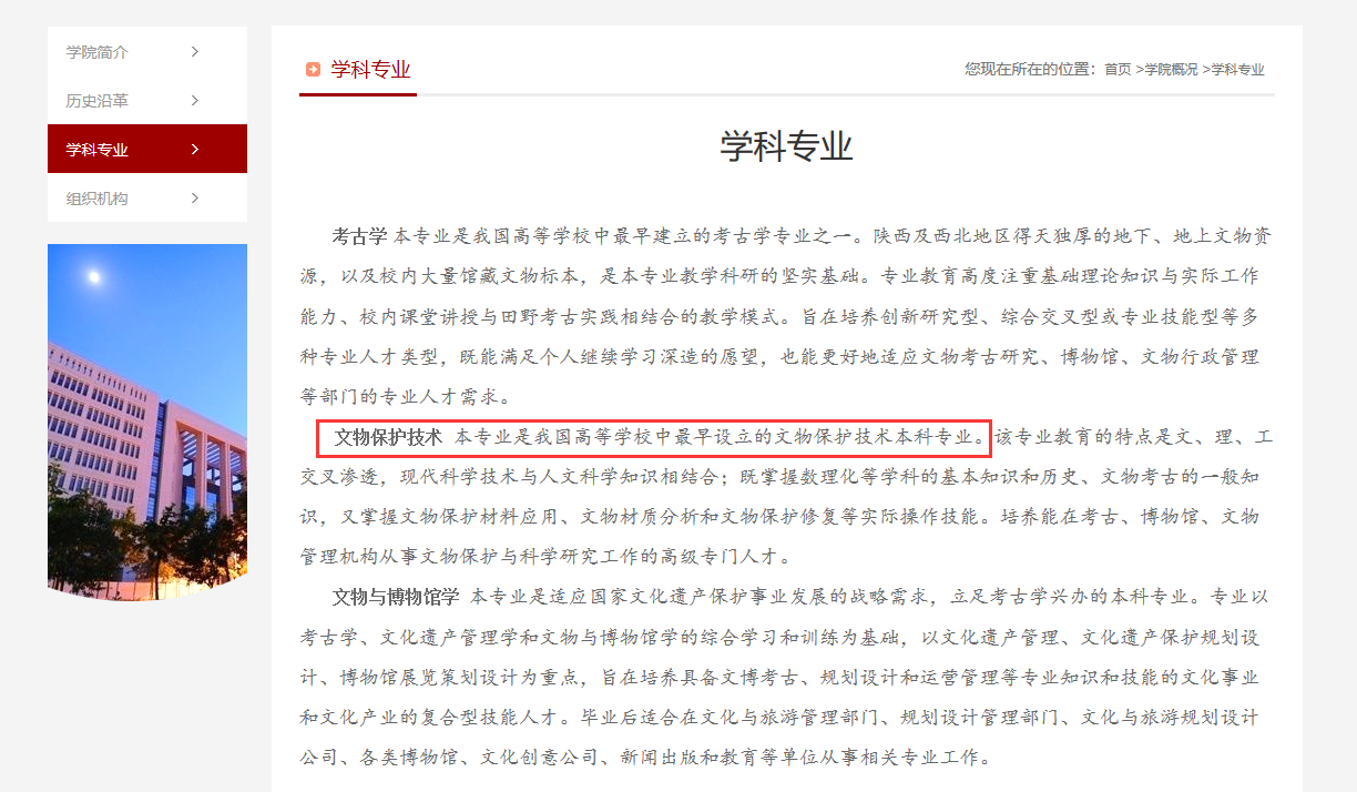 西北大學(xué)考古學(xué)研究起始于1938年西北聯(lián)合大學(xué)歷史學(xué)系考古學(xué)組對張騫墓的調(diào)查發(fā)掘。新中國建立后,西北大學(xué)服從國家文物事業(yè)整體布局,于1956年設(shè)置全國第二個考古學(xué)專業(yè)。