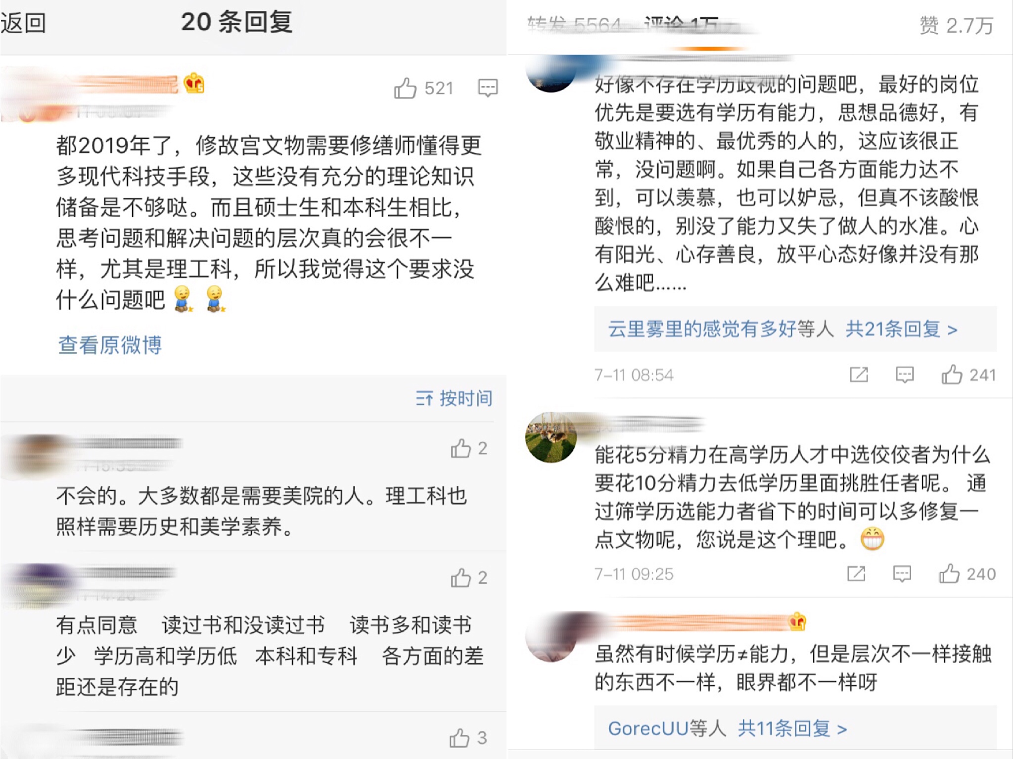 學(xué)歷高雖然并不代表能力一定強(qiáng),但至少證明了,寒窗苦讀的那些年,他們有足夠的耐心和毅力將一件事做完、做好。也許這就是故宮文物修繕學(xué)者的閃光點。