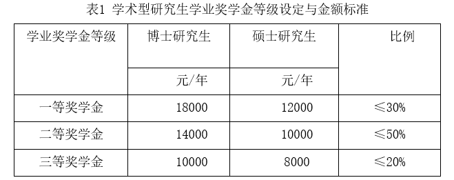 專業(yè)學(xué)位研究生學(xué)業(yè)獎學(xué)金的等級設(shè)定與金額標(biāo)準(zhǔn):學(xué)校統(tǒng)籌中央財政撥款、專業(yè)學(xué)位研究生交納的學(xué)費(fèi)等經(jīng)費(fèi),設(shè)立專業(yè)學(xué)位研究生學(xué)業(yè)獎學(xué)金基本額度,由各學(xué)院參照學(xué)術(shù)型碩士生學(xué)業(yè)獎學(xué)金發(fā)放等級、金額,自定發(fā)放比例,學(xué)業(yè)獎學(xué)金覆蓋面不得低于可參評對象的50%。如最高發(fā)放標(biāo)準(zhǔn)超過每年每人12000元的,高出部分另設(shè)為學(xué)院獎學(xué)金。