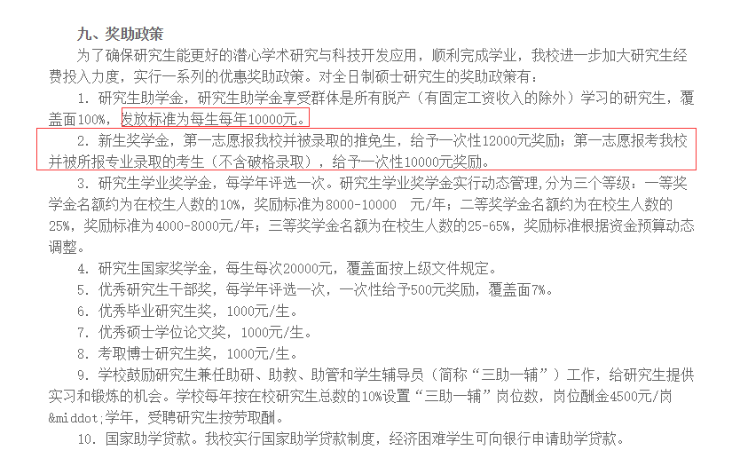 2.新生獎學(xué)金,第一志愿報我校并被錄取的推免生,給予一次性12000元獎勵;第一志愿報考我校并被所報專業(yè)錄取的考生(不含破格錄取),給予一次性10000元獎勵。