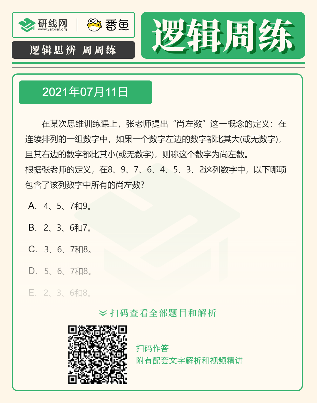 以上就是小編為大家整理“2022考研邏輯備考:7月11日邏輯專項練習(xí)及答案”的全部內(nèi)容,希望各位考生堅持利用起來,想要獲取更多內(nèi)容請持續(xù)關(guān)注本網(wǎng)站。