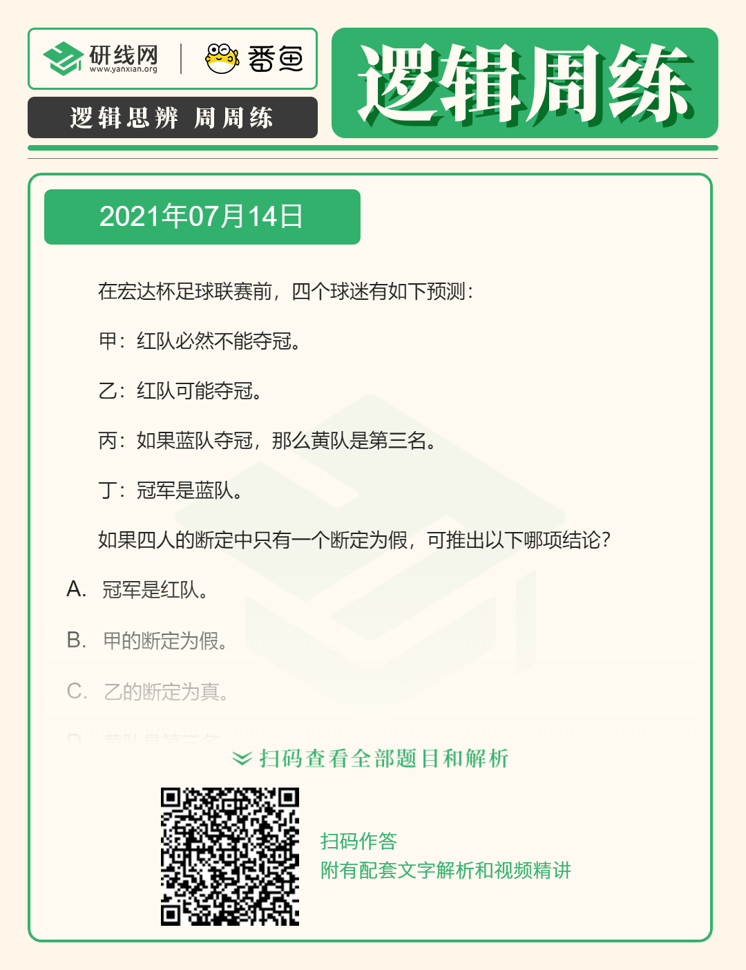 2022考研邏輯備考:7月14日邏輯專項練習及答案