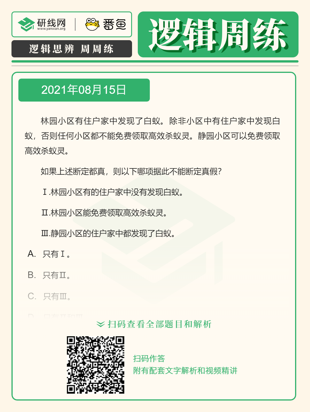 2022考研邏輯備考:8月15日邏輯專項練習及答案