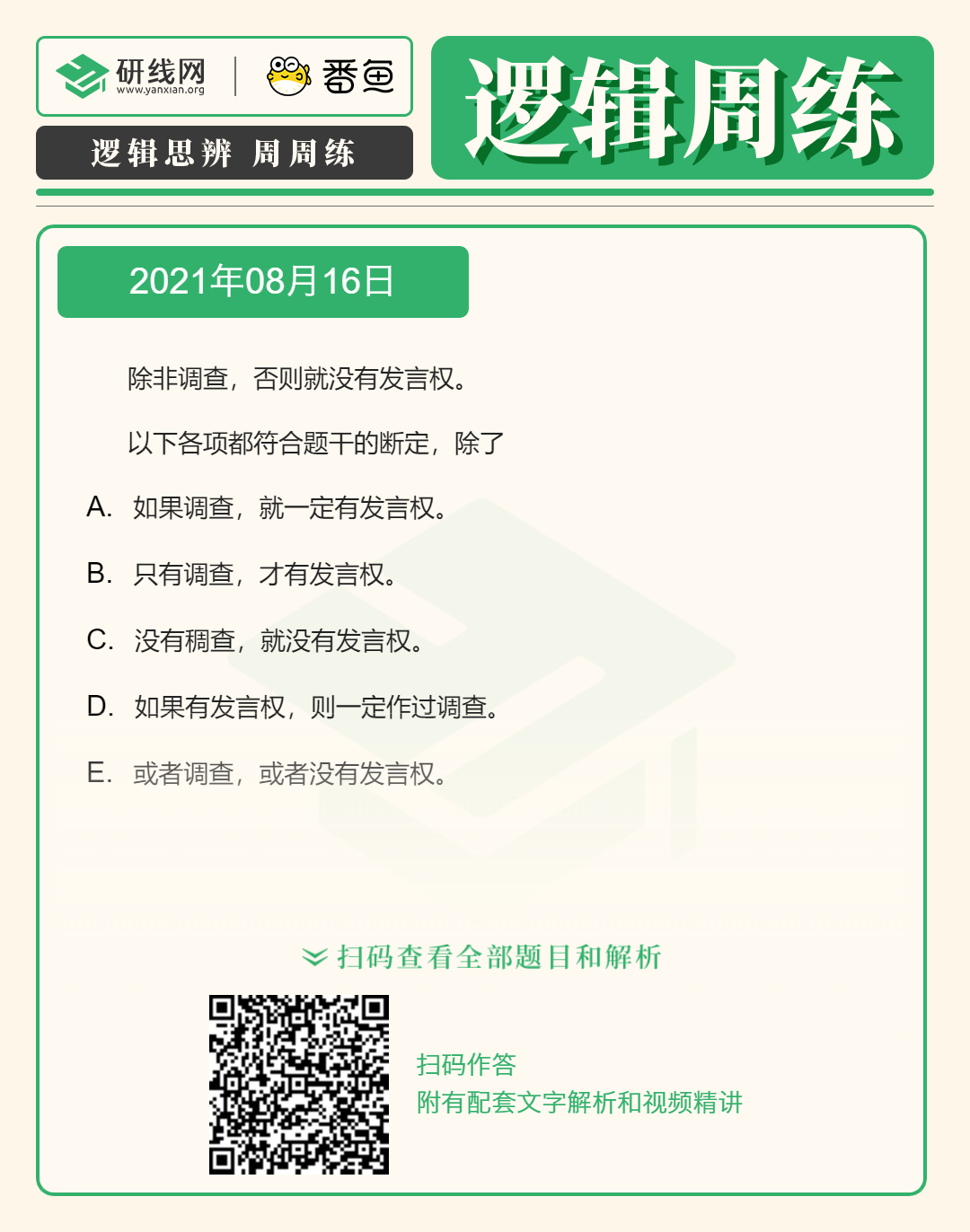 2022考研邏輯備考:8月16日邏輯專項練習及答案