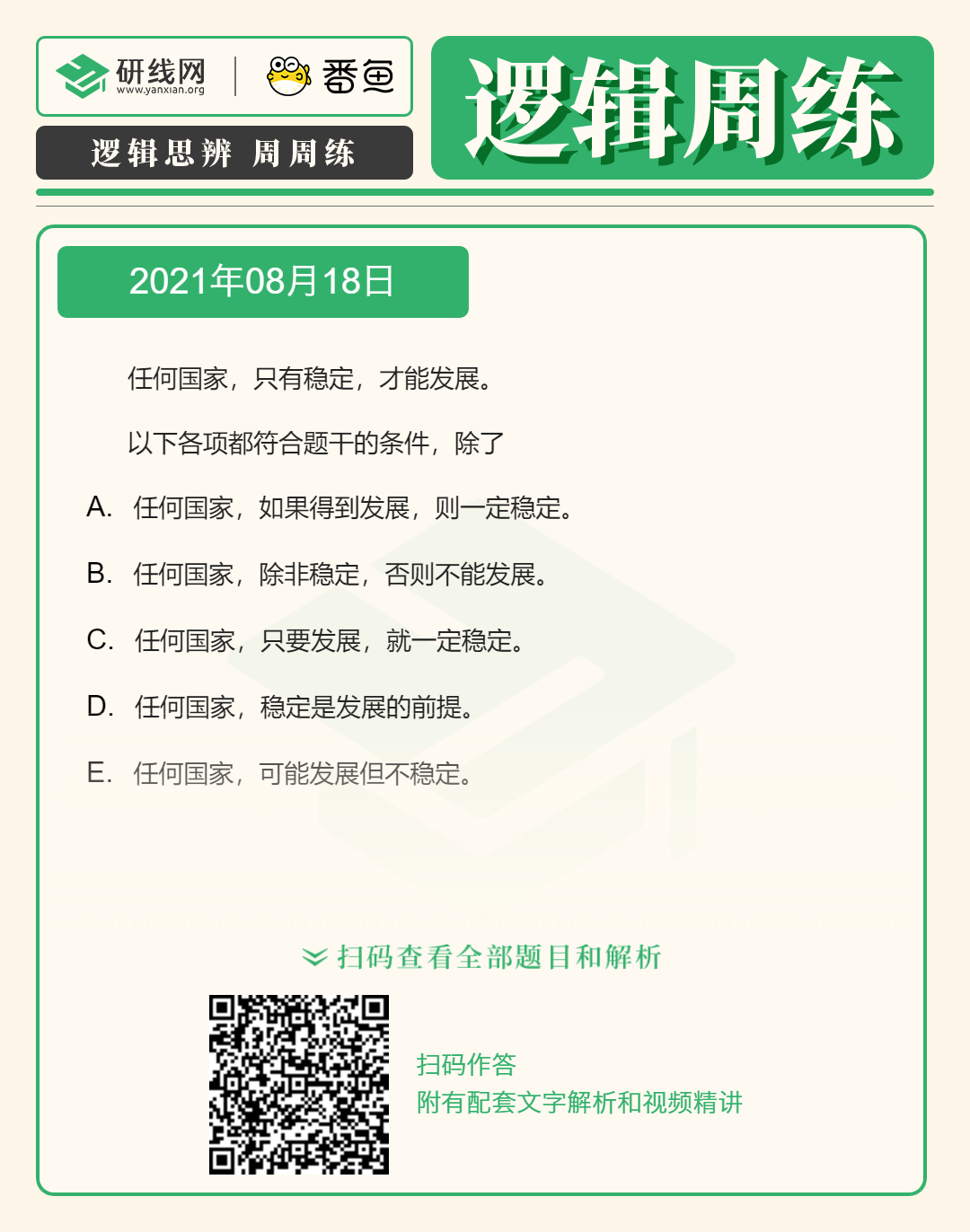 以上就是小編為大家整理“2022考研邏輯備考:8月18日邏輯專項(xiàng)練習(xí)及答案”的全部?jī)?nèi)容,希望各位考生堅(jiān)持利用起來,想要獲取更多內(nèi)容請(qǐng)持續(xù)關(guān)注本網(wǎng)站。