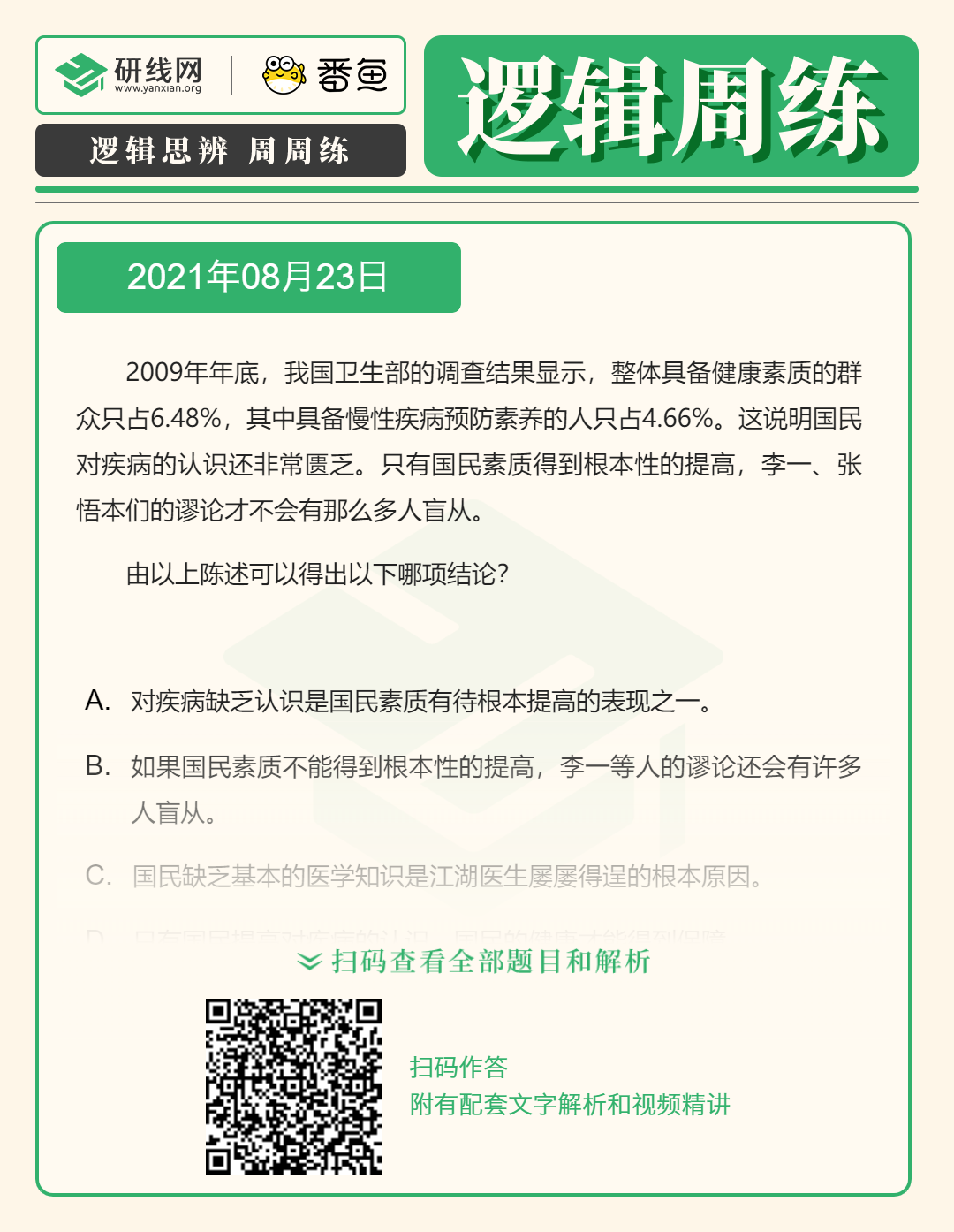 邏輯思辨周周練,考研邏輯專項練習,攻克邏輯難關!今天小編整理了“2022考研邏輯備考:8月23日邏輯專項練習及答案”,希望能對廣大考生有所幫助!