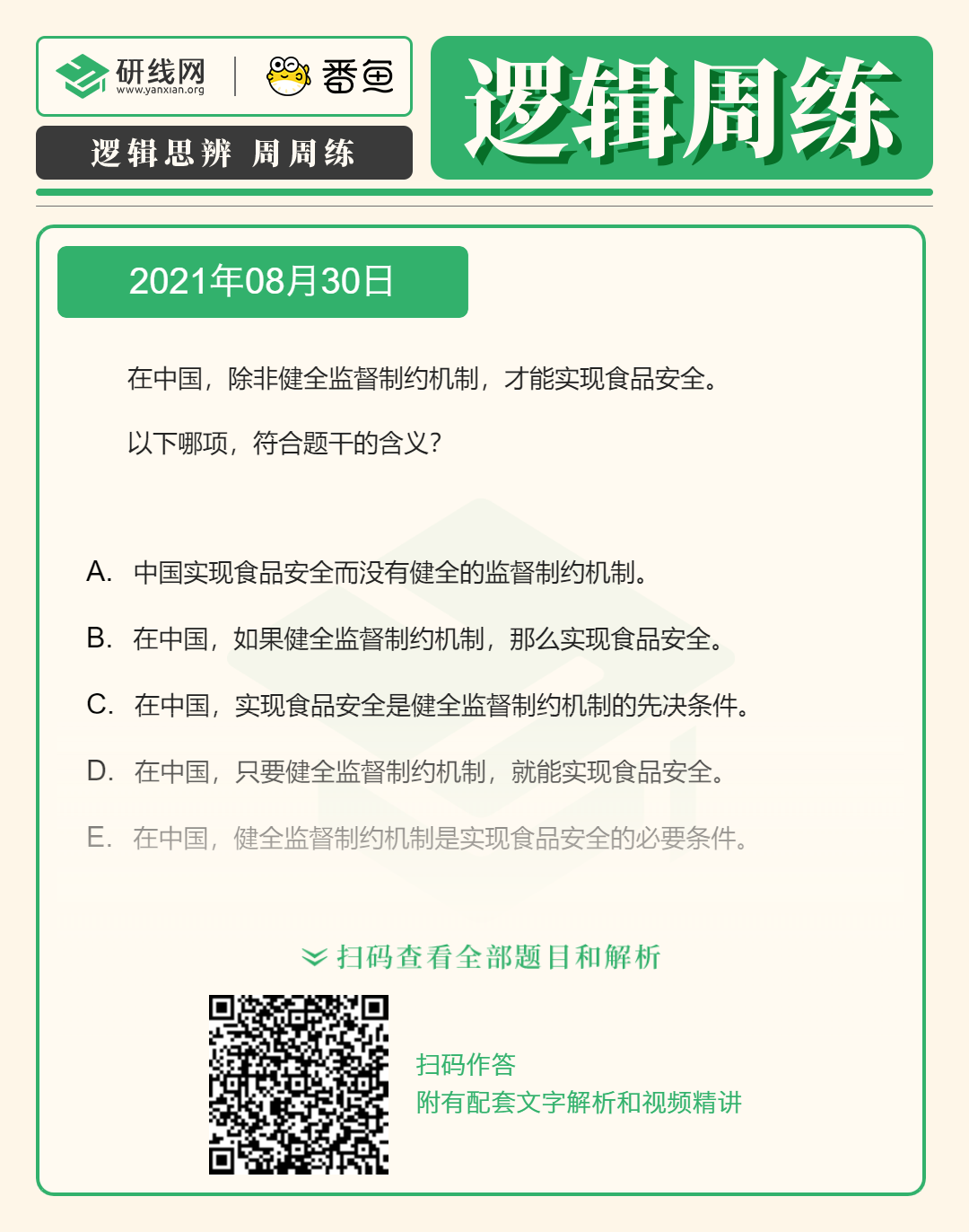 2022考研邏輯備考:8月30日邏輯專項練習及答案