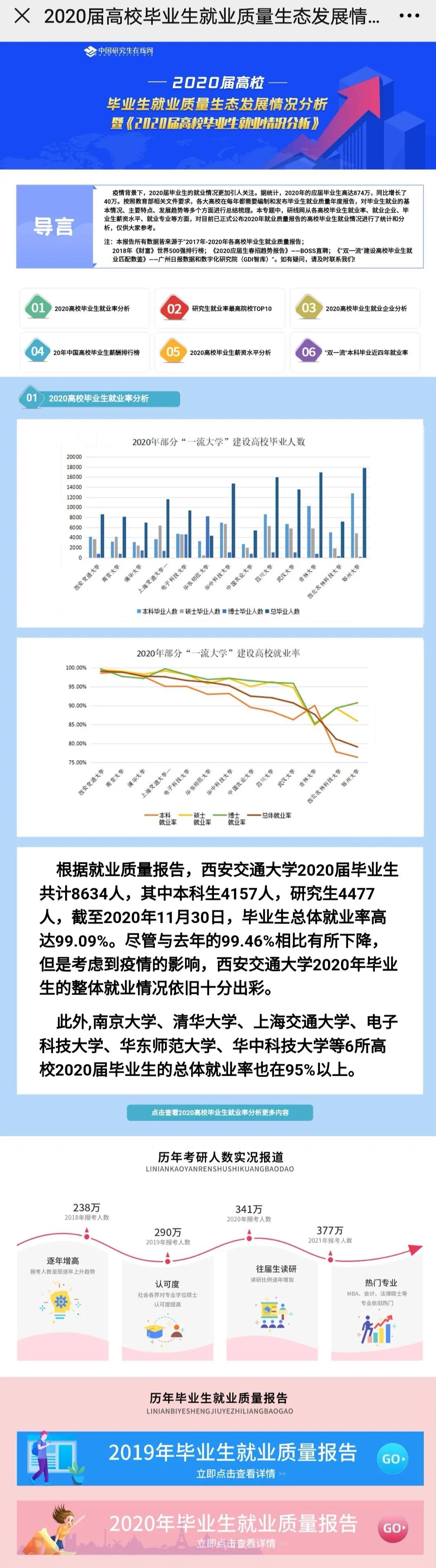 如果不知道接下來的路該往哪走,來看看研線網為大家整理的【2020年高校畢業生就業質量的報告分析】吧~看看院校的就業率,看看本科生研究生的薪資水平,就業方向,也許你會知道接下來自己要努力的方向!對于二戰要重新擇校的同學們,也是一個很好的參考!