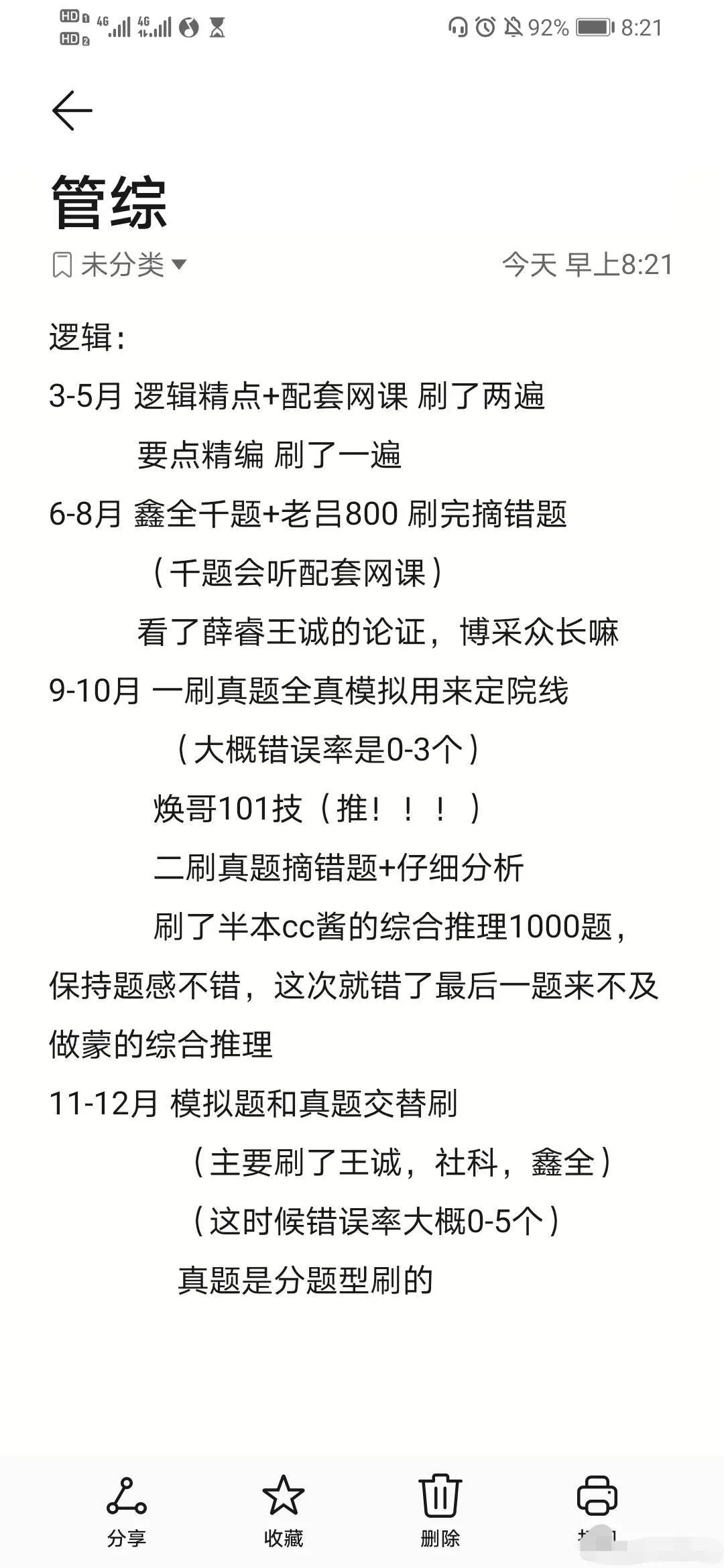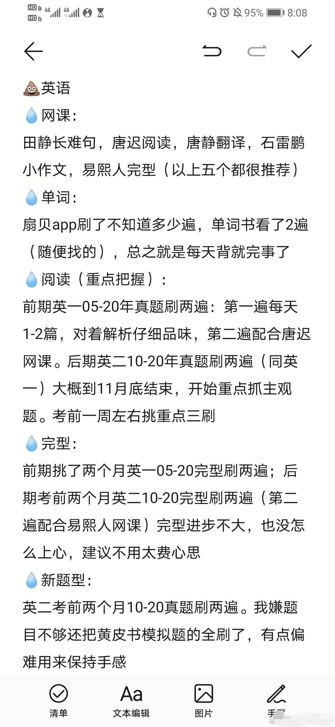 前期英一05-20年真題刷兩遍,第一遍每天1-2篇,對照解析細品;第二遍配合唐遲網課;后期英二10-20年真題刷兩遍,11月底開始抓主觀題,考前一周左右挑重點三刷。