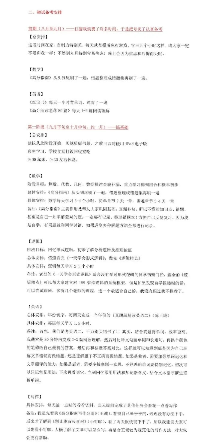請大家根據(jù)自己的實(shí)際情況早日做好規(guī)劃和準(zhǔn)備,對我而言,3個月備考其實(shí)很匆忙,經(jīng)常有女媧補(bǔ)天的感覺,4-6 個月可能發(fā)揮會更好;我的室友(一位非常優(yōu)秀的同學(xué))因為在外實(shí)習(xí),最后自學(xué)了二十天,成績248分。所以大家要結(jié)合自身條件分析。