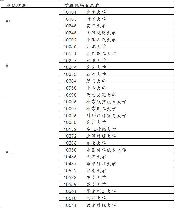 (首次專業學位水平評估結果1251 工商管理部分名單)
