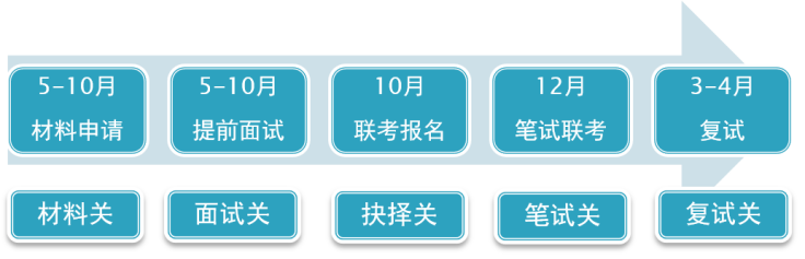 (1) 面試的時間,往往是由材料申請的批次確定的。(只有極個別院校,才會給你時間調整的機會。)由于材料關和面試關在時間上的緊密關聯性,材料申請決定面試時間,一般都是越早申請越好,理由完全同上,不再贅述。