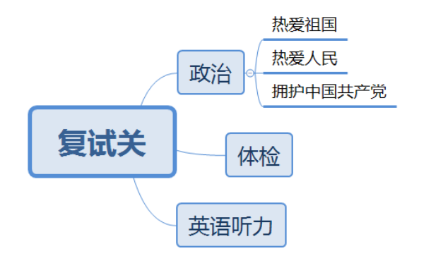 政治卷面上,盡量把你知道的答全,按照小學生守則第一條說的那樣,熱愛祖國,熱愛人民,擁護中國共產黨,就沒問題;體檢,只要查不出能嚴重影響到他人的傳染病,就沒問題;英語聽力(如果有的話),只要去參加,就沒問題。(對已經通過了提前批面試且筆試達到國家線的考生說復試,多說一個字我都覺得多余。打住,不說了。)