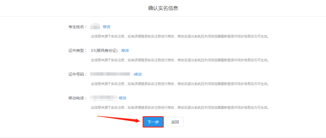 (11)點(diǎn)擊“下一步”確認(rèn)考生信息。