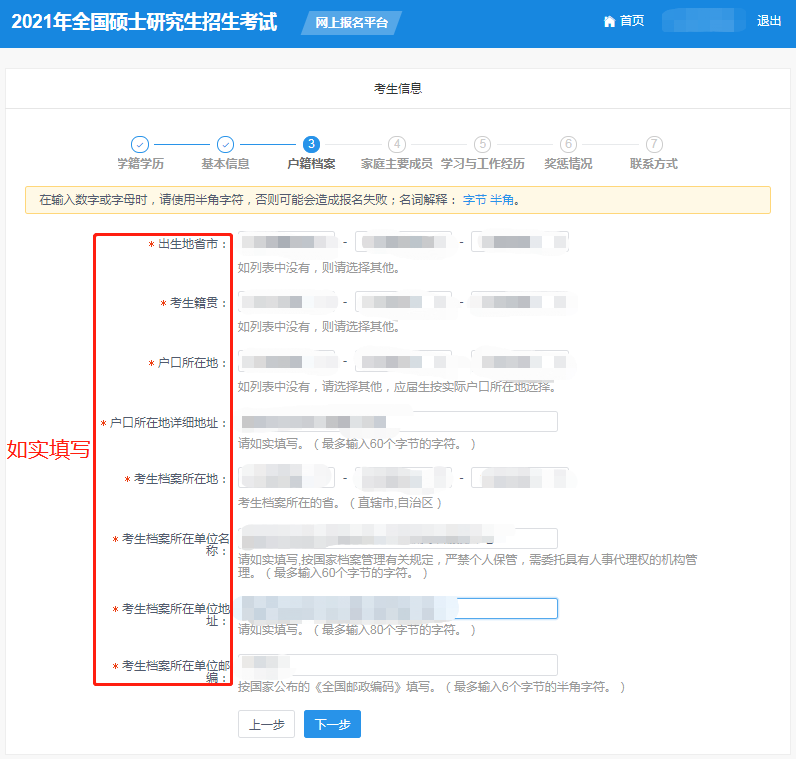 (6)點(diǎn)擊“下一步”進(jìn)行戶籍檔案信息填寫。