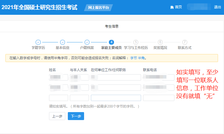 (7)點(diǎn)擊“下一步”進(jìn)行家庭主要成員信息填寫。
