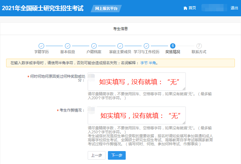 (9)點(diǎn)擊“下一步”進(jìn)行獎(jiǎng)懲情況填寫。