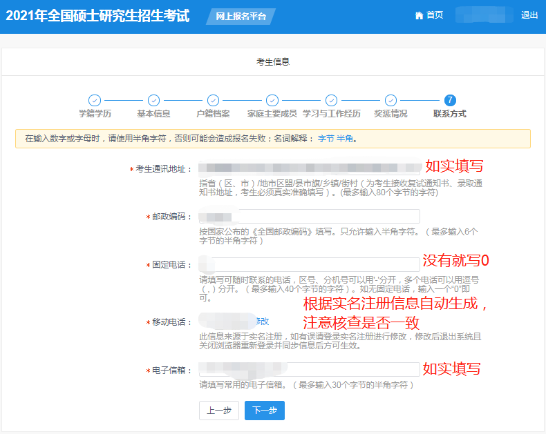 (10)點(diǎn)擊“下一步”進(jìn)行聯(lián)系方式填寫。