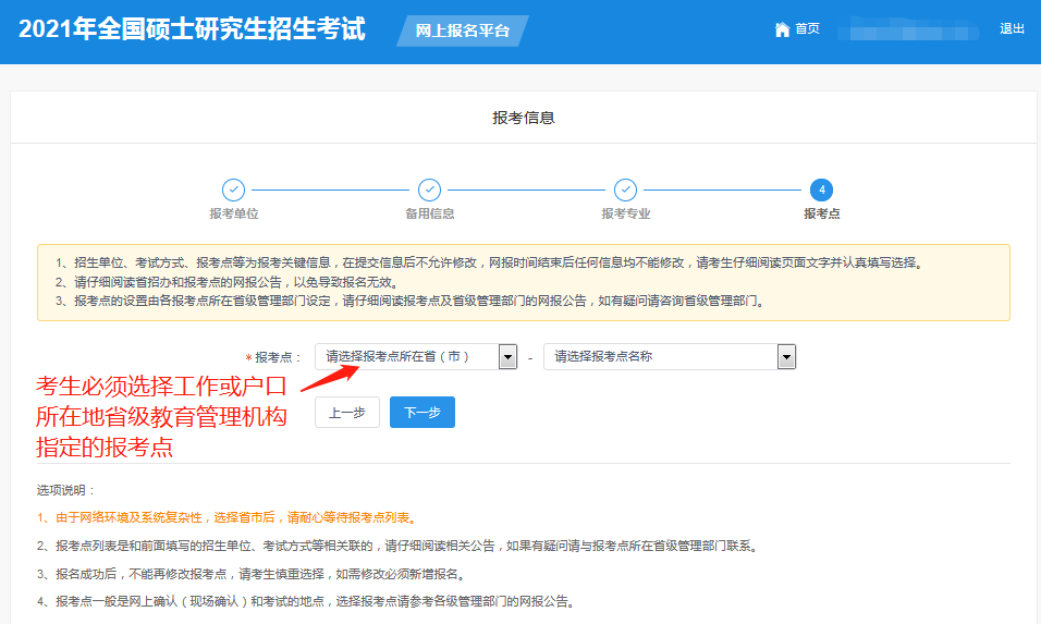 (9)選擇報(bào)考點(diǎn)