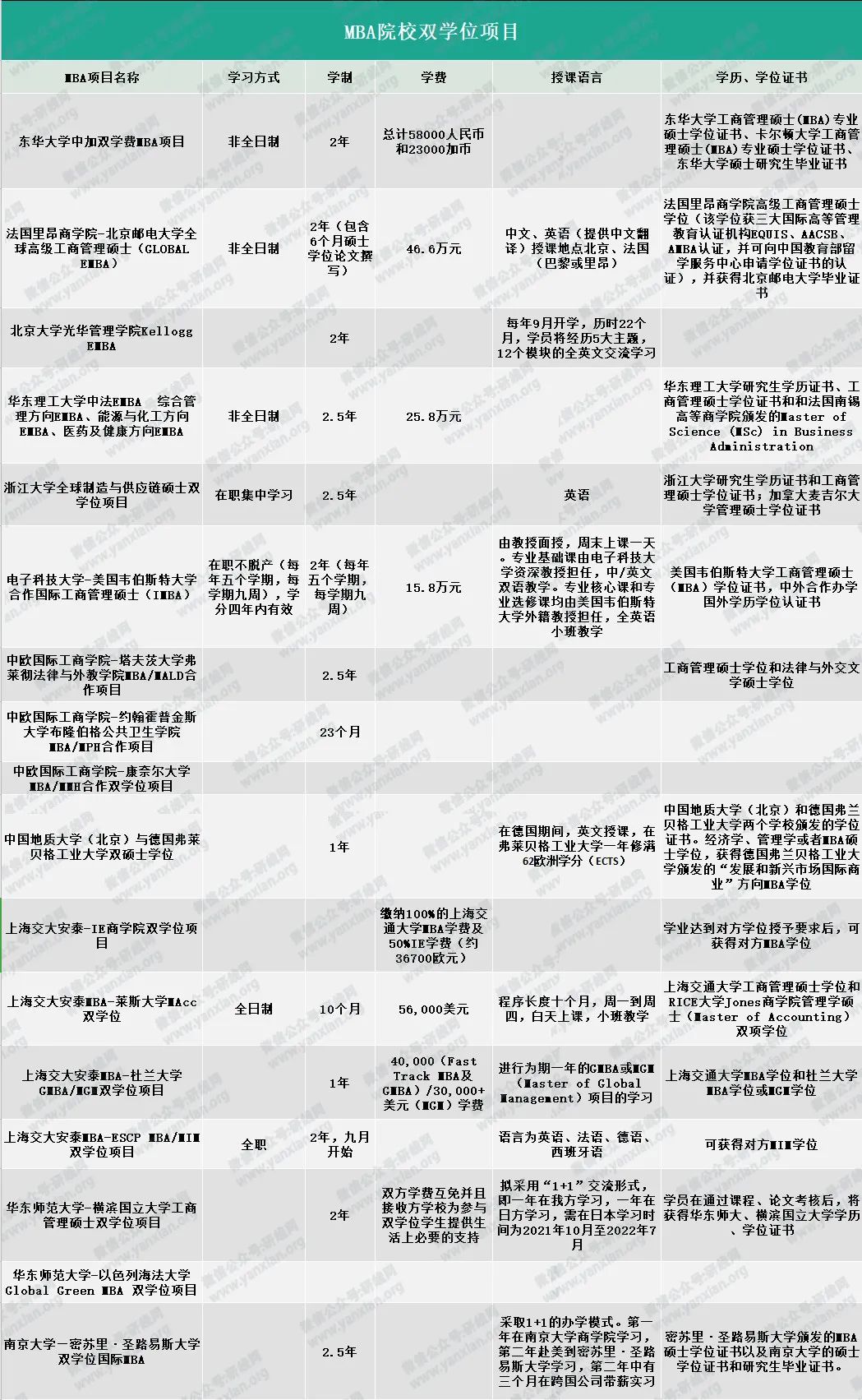 還有下列MBA雙學位項目,具體項目介紹可以去官網查看哦
