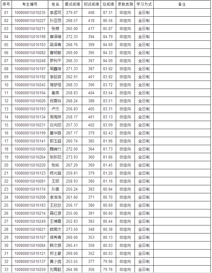公示內容:河北工業大學化工學院2020年碩士研究生招生化學專業擬錄取名單