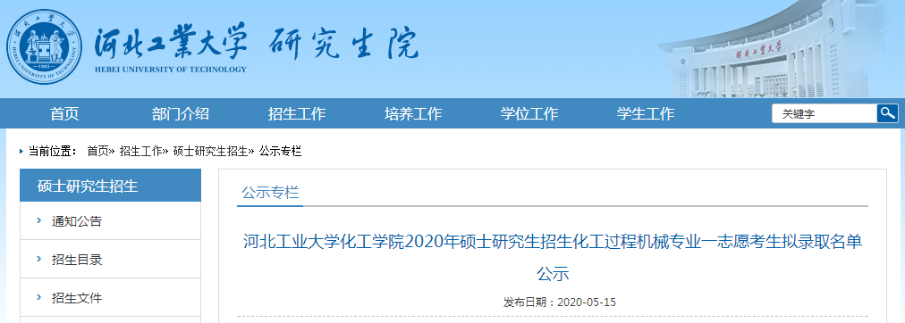 原標題:河北工業大學化工學院2020年碩士研究生招生化工過程機械專業一志愿考生擬錄取名單公示