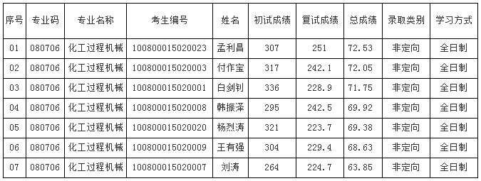 點擊查看:河北工業大學化工過程機械專業研究生一志愿擬錄取名單