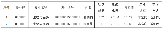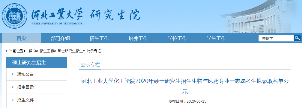 公示內容:河北工業大學化工學院2020年碩士研究生招生生物與醫藥專業一志愿考生擬錄取名單
