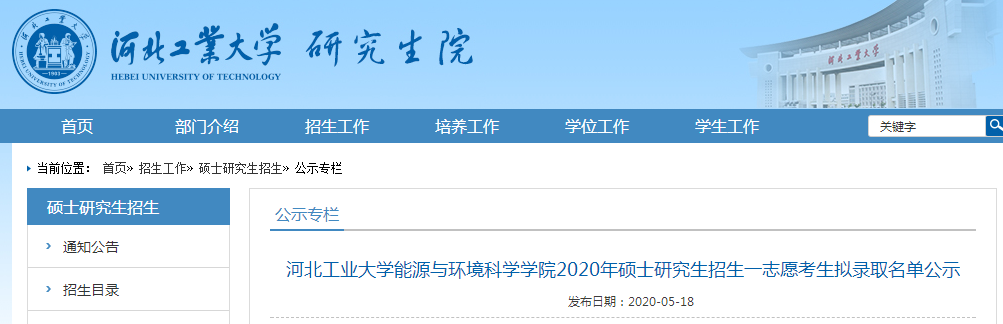 原標題:河北工業大學能源與環境科學學院2020年碩士研究生招生一志愿考生擬錄取名單公示