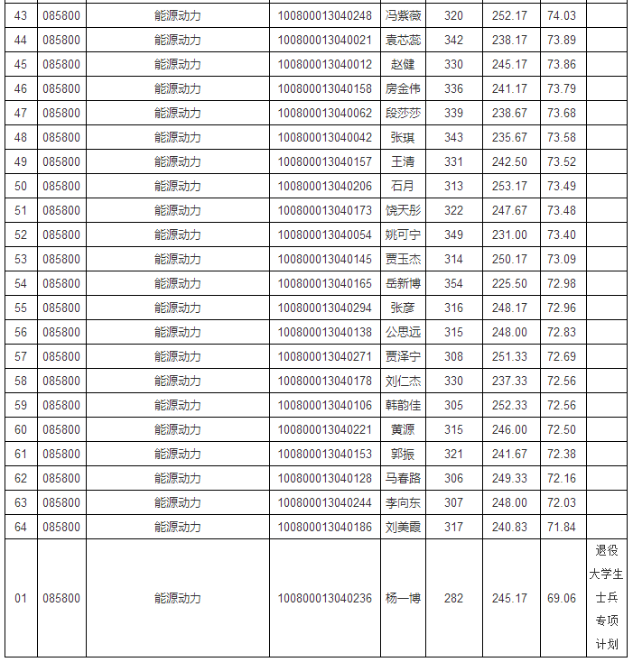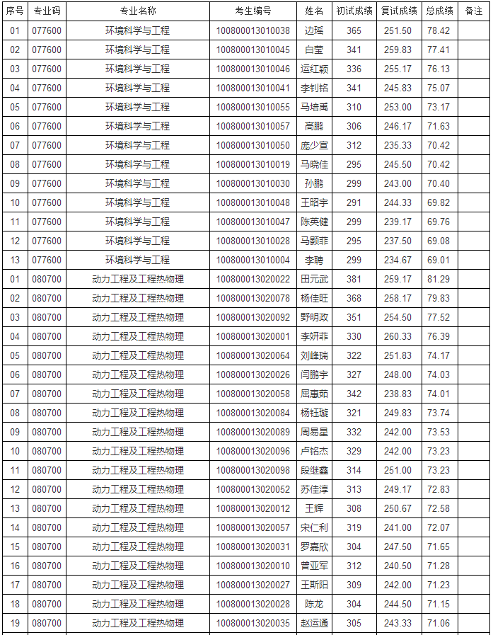 公示內容:河北工業大學能源與環境科學學院2020年碩士研究生招生一志愿考生擬錄取名單