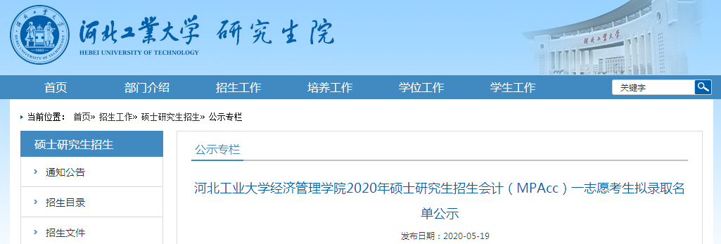 公示內容:河北工業大學2020年碩士研究生招生會計(MPAcc)一志愿考生擬錄取名單(點擊此處查看)。