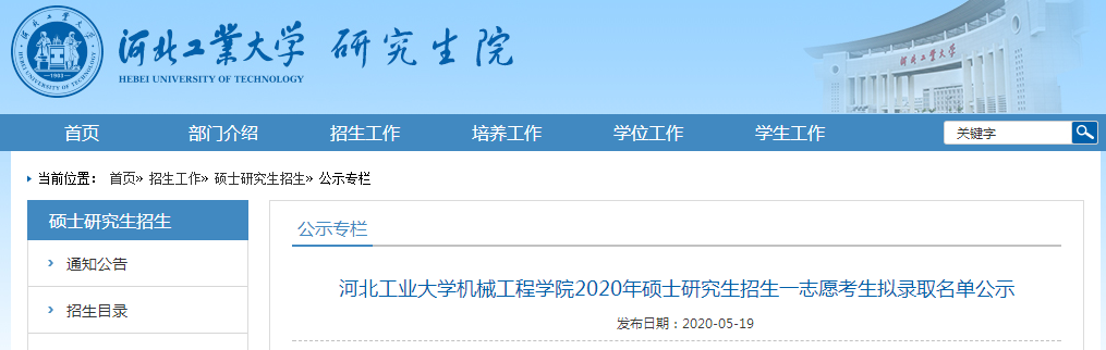 公示內容:河北工業大學機械工程學院2020年碩士研究生招生一志愿考生擬錄取名單