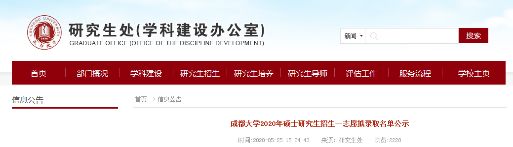 原標題:成都大學2020年碩士研究生招生一志愿擬錄取名單公示