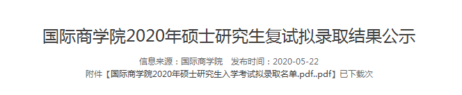 原標題:國際商學院2020年碩士研究生復試擬錄取結果公示
