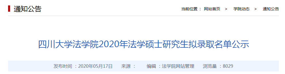 原標(biāo)題:四川大學(xué)法學(xué)院2020年法學(xué)碩士研究生擬錄取名單公示