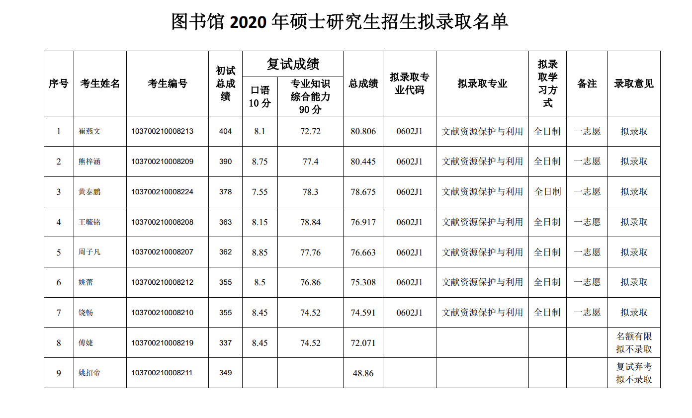 以上就是“2020考研擬錄取名單:安徽師范大學圖書館 2020 年碩士研究生招生擬錄取名單”的全部內容,更多錄取名單相關內容,盡在“錄取名單”欄目!