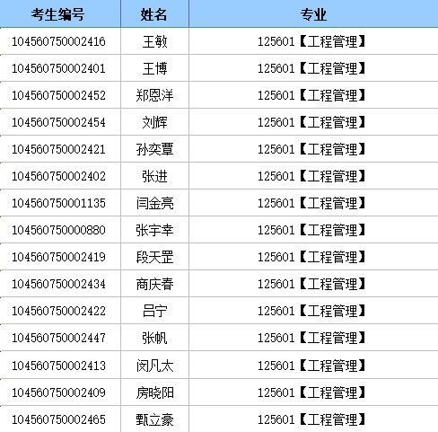 山東財經大學MEM工程管理(125601)研究生擬錄取名單: