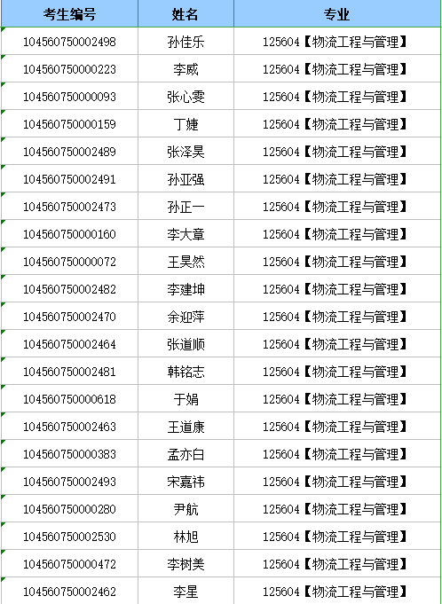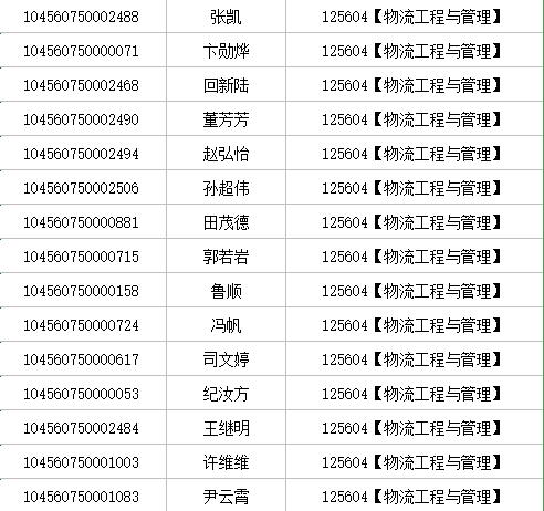 山東財經大學MEM物流工程與管理(125604)研究生錄取名單: