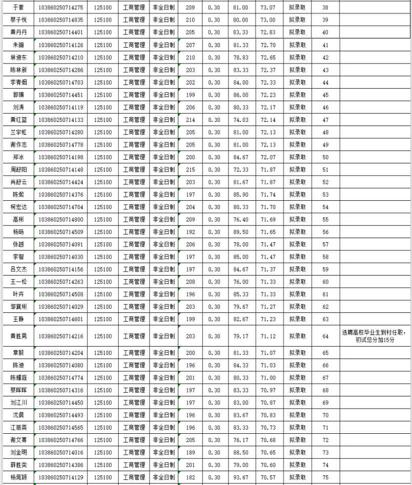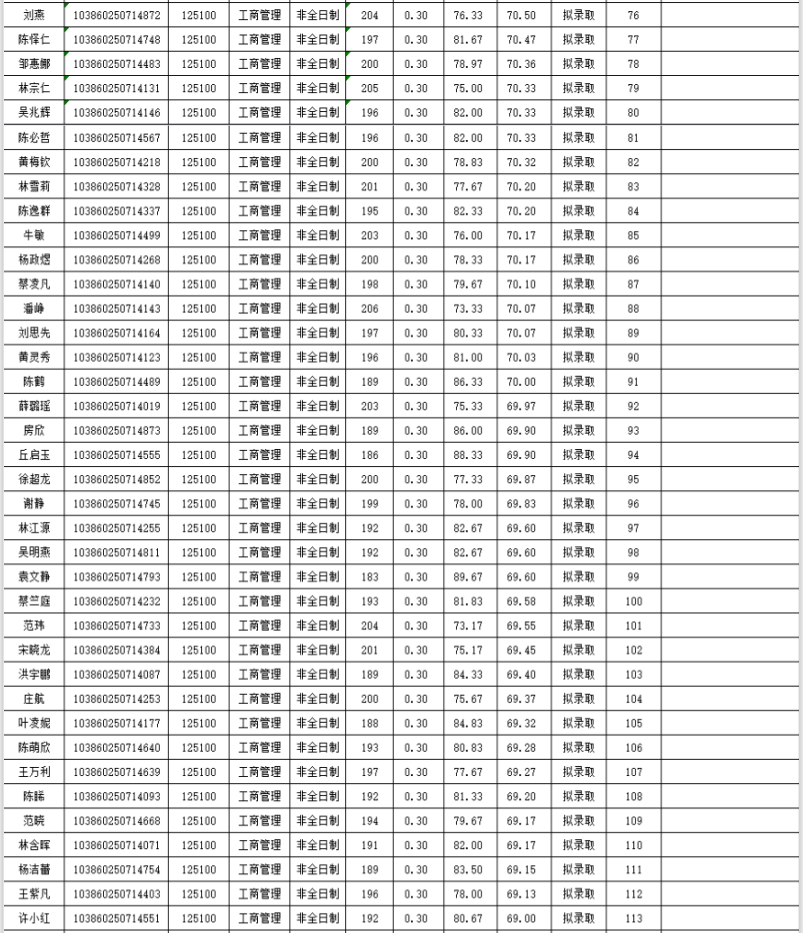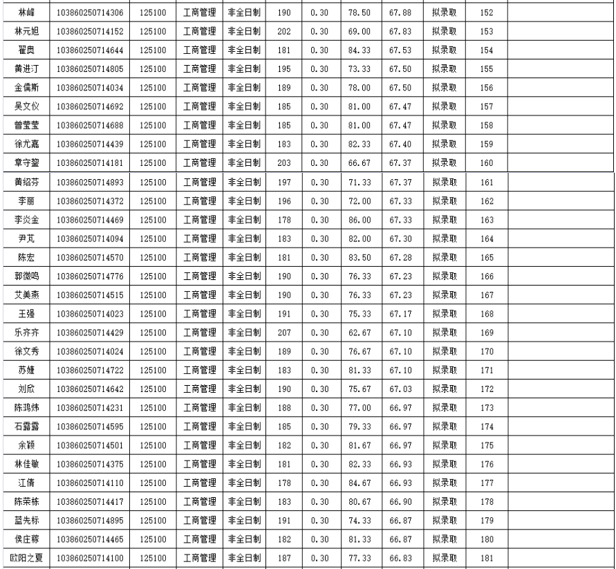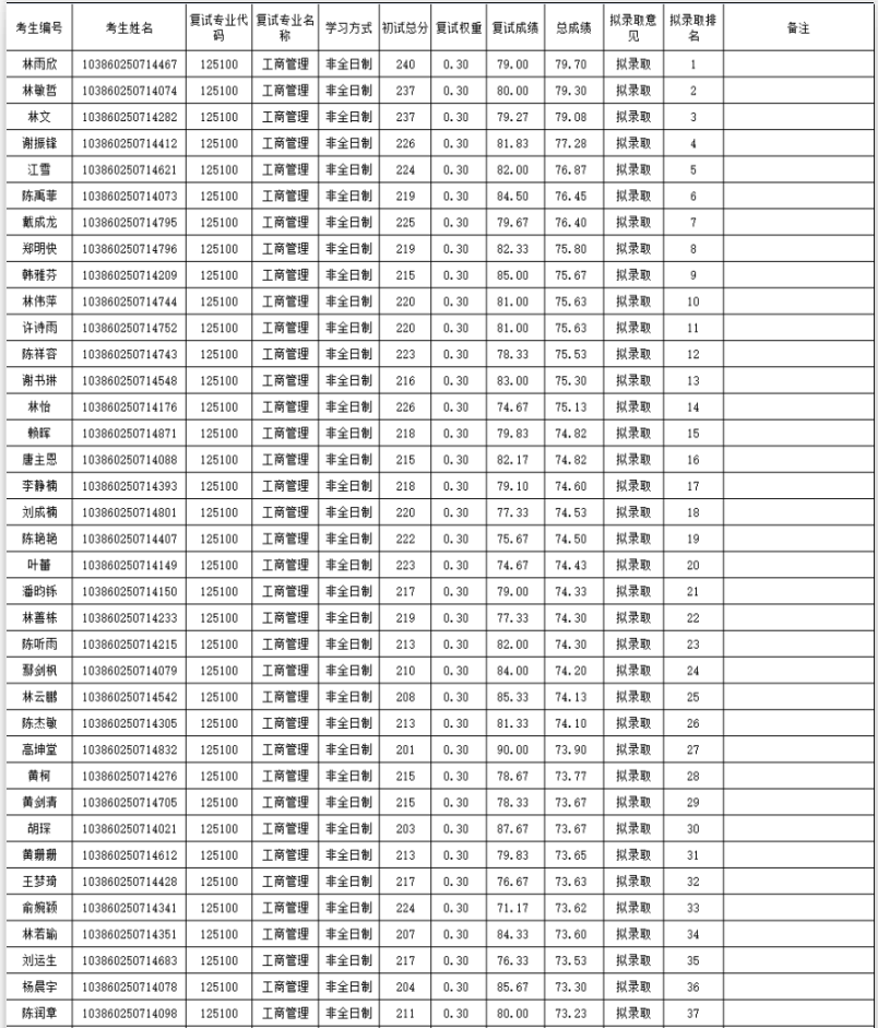 福州大學經濟與管理學院2020年非全日制碩士研究生復試情況公示(工商管理):