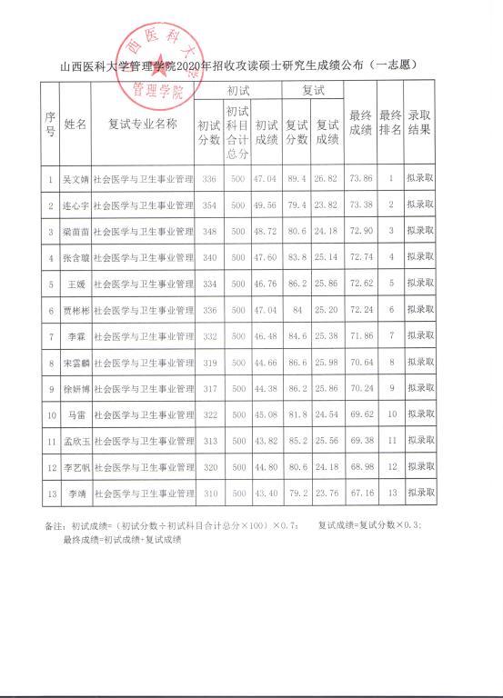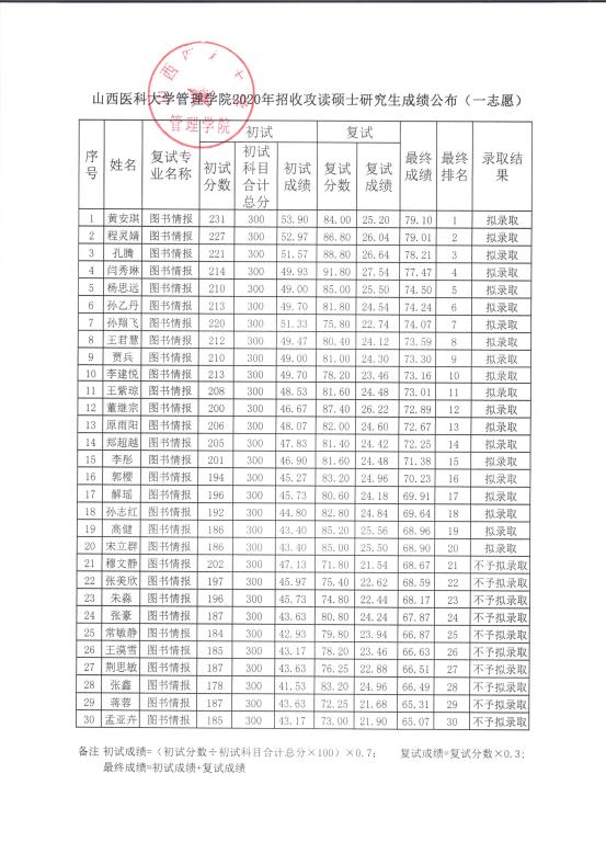 2020考研擬錄取名單:山西醫科大學2020年碩士研究生擬錄取名單