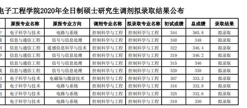 2020考研擬錄取名單:西安電子科技大學2020年電子工程學院研究生擬錄取名單