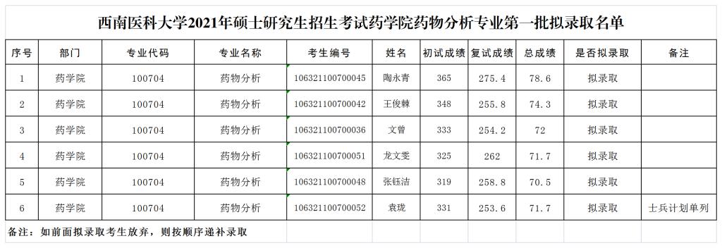 以上就是“2021考研擬錄取名單:西南醫科大學藥學院2021年碩士研究生擬錄取名單”的全部內容,更多錄取名單相關內容點擊2021考研擬錄取名單:全國各大院校2021年碩士研究生擬錄取名單匯總!查看詳情!