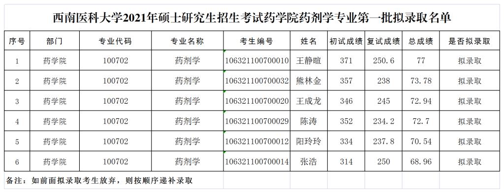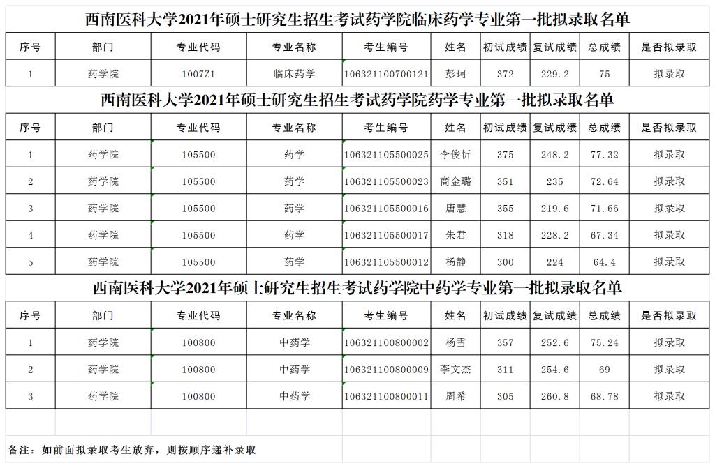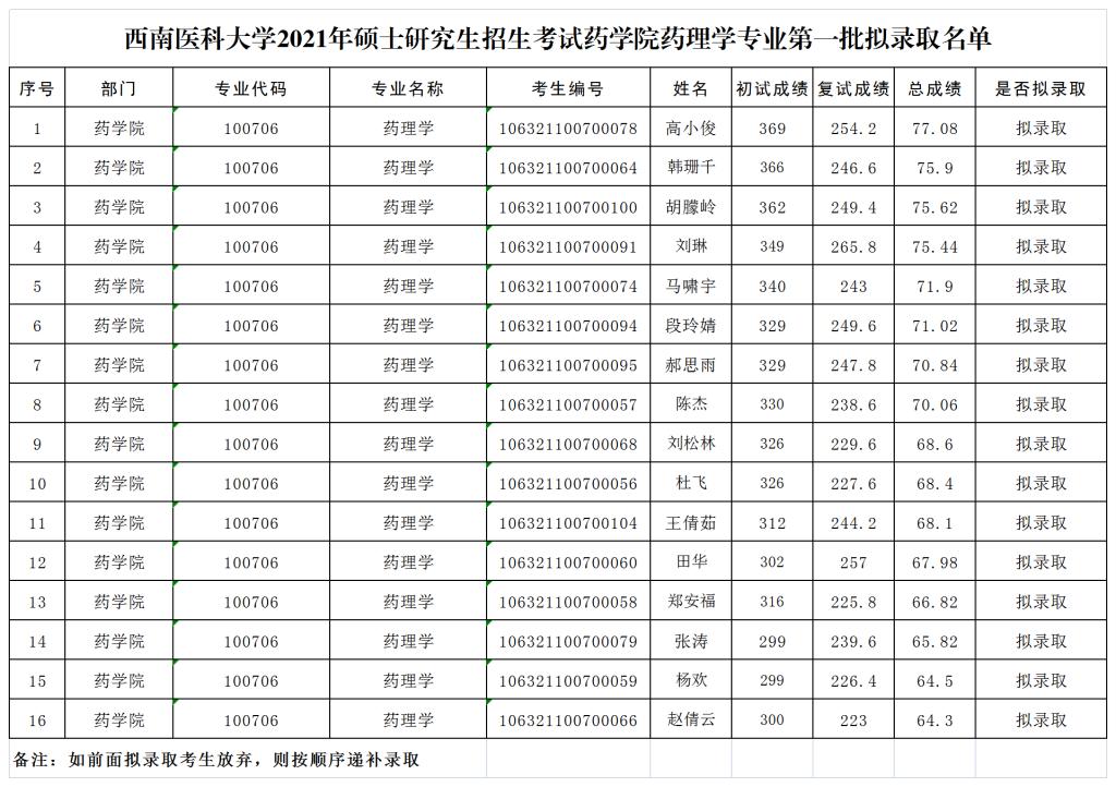 近日,已有院校公布2021研究生擬錄取名單。考研的同學們有沒有關注?今天小編就整理了“2021考研擬錄取名單:西南醫科大學藥學院2021年碩士研究生擬錄取名單”的相關內容,希望能對大家有所幫助。
