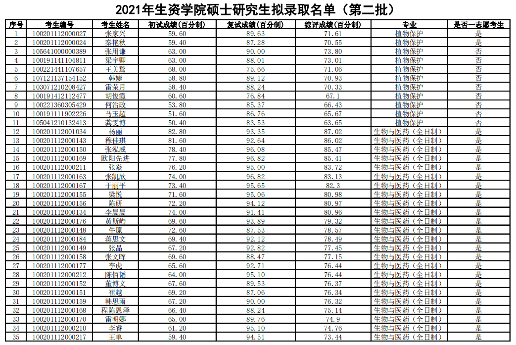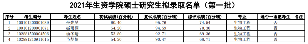 2021考研擬錄取名單:北京農學院生物與資源環境學院2021年碩士研究生擬錄取名單