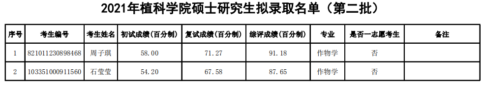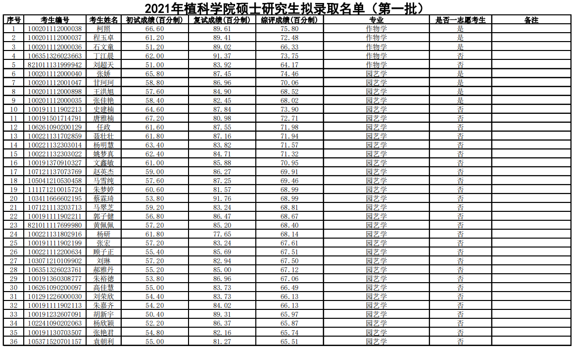 2021考研擬錄取名單:北京農(nóng)學(xué)院植物科學(xué)技術(shù)學(xué)院2021年碩士研究生擬錄取名單”的全部內(nèi)容,更多錄取名單相關(guān)內(nèi)容點(diǎn)擊