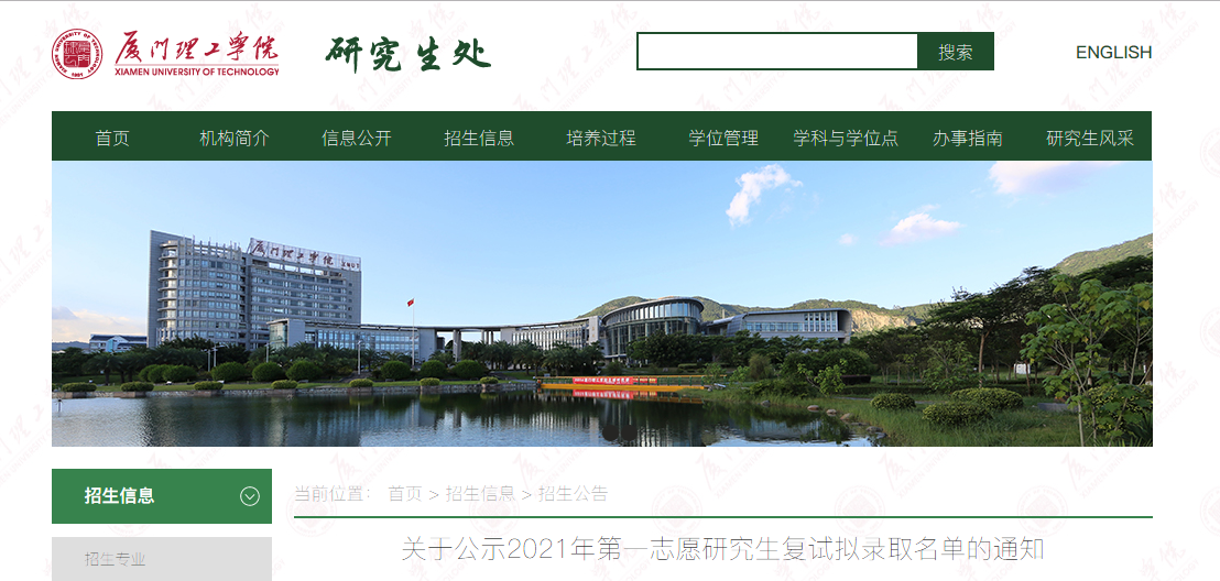 根據(jù)我校《廈門理工學(xué)院2021年碩士研究生招生復(fù)試錄取辦法》,現(xiàn)將一志愿復(fù)試擬錄取考生名單公示(詳見附件),公示期:3月22日-4月2日。如考生對(duì)名單有異議,請(qǐng)與我校研究生招生辦公室聯(lián)系。聯(lián)系電話:0592-6291727/6291820;郵箱:yjsb@xmut.edu.cn。