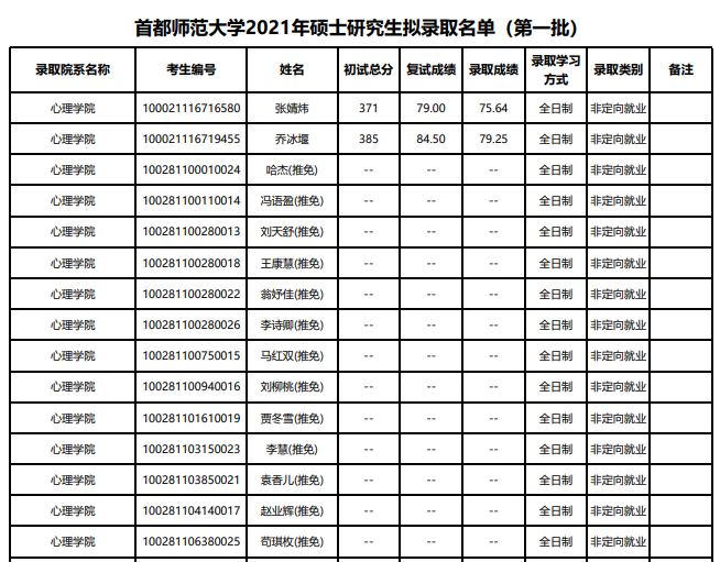 原文標題:首都師范大學2021年碩士研究生擬錄取名單(第一批)